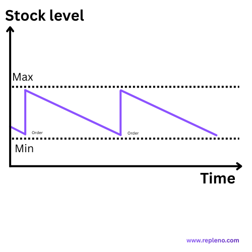 Basic Principle: As soon as the current stock reaches or falls below the minimum stock, an order is automatically triggered that brings the stock back to the Max level.
